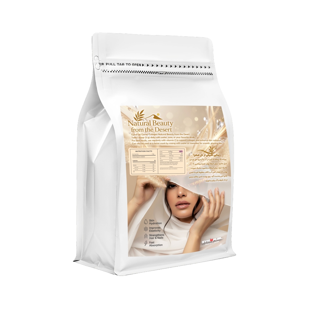کلاژن شتر خالص با جذب فوقالعاده بالا؛ مناسب برای شفافیت و روشنتر شدن پوست، کاهش خطوط ریز،